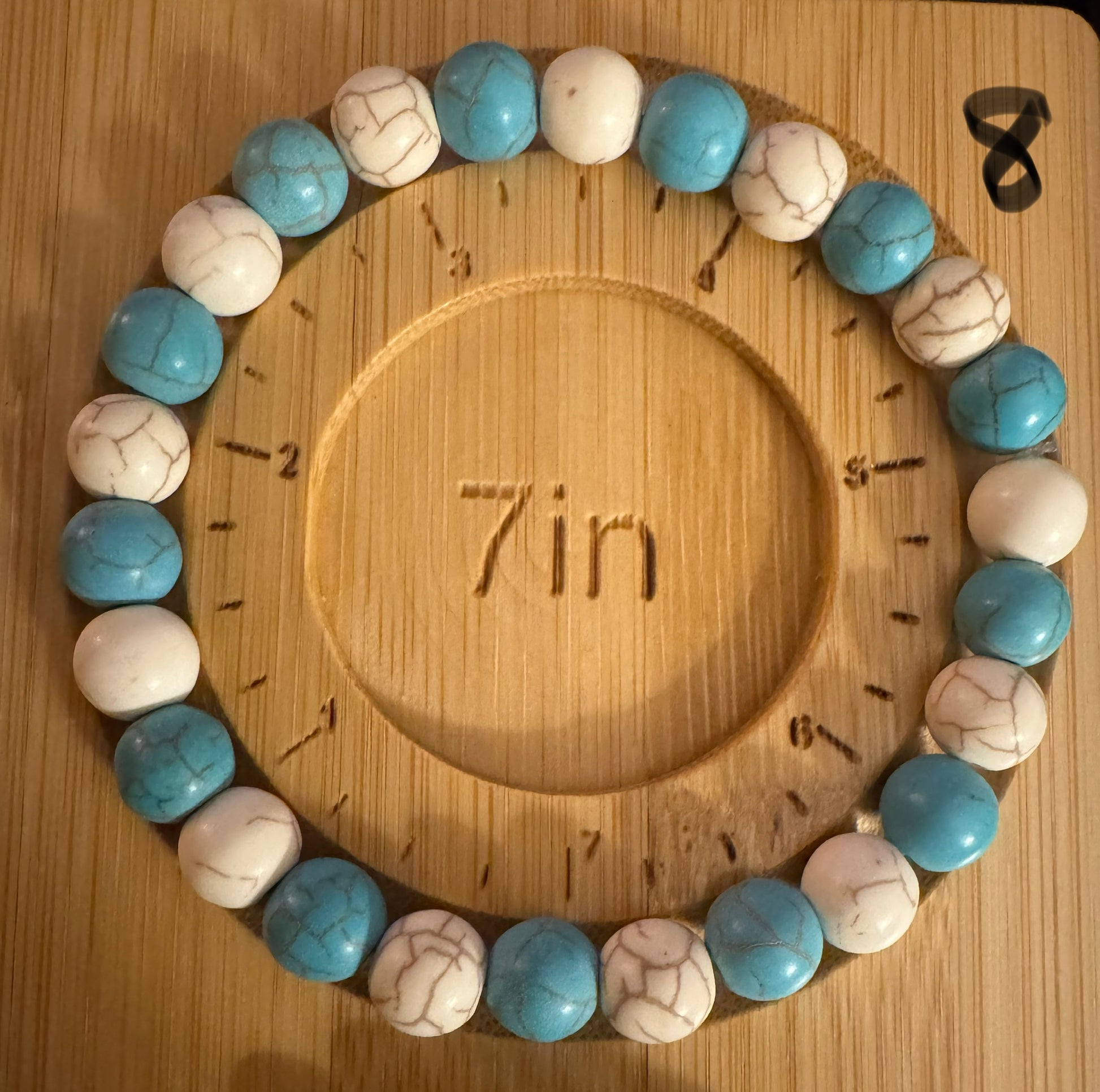 Channel serene sophistication with our blue and white marble design glass bead bracelet. Featuring a stunning blend of swirling blues and crisp whites, each glass bead is uniquely patterned to mimic the beauty of polished marble — no two are exactly alike. The cool tones evoke a sense of calm and clarity, making this bracelet a perfect accessory for everyday elegance or mindful moments.