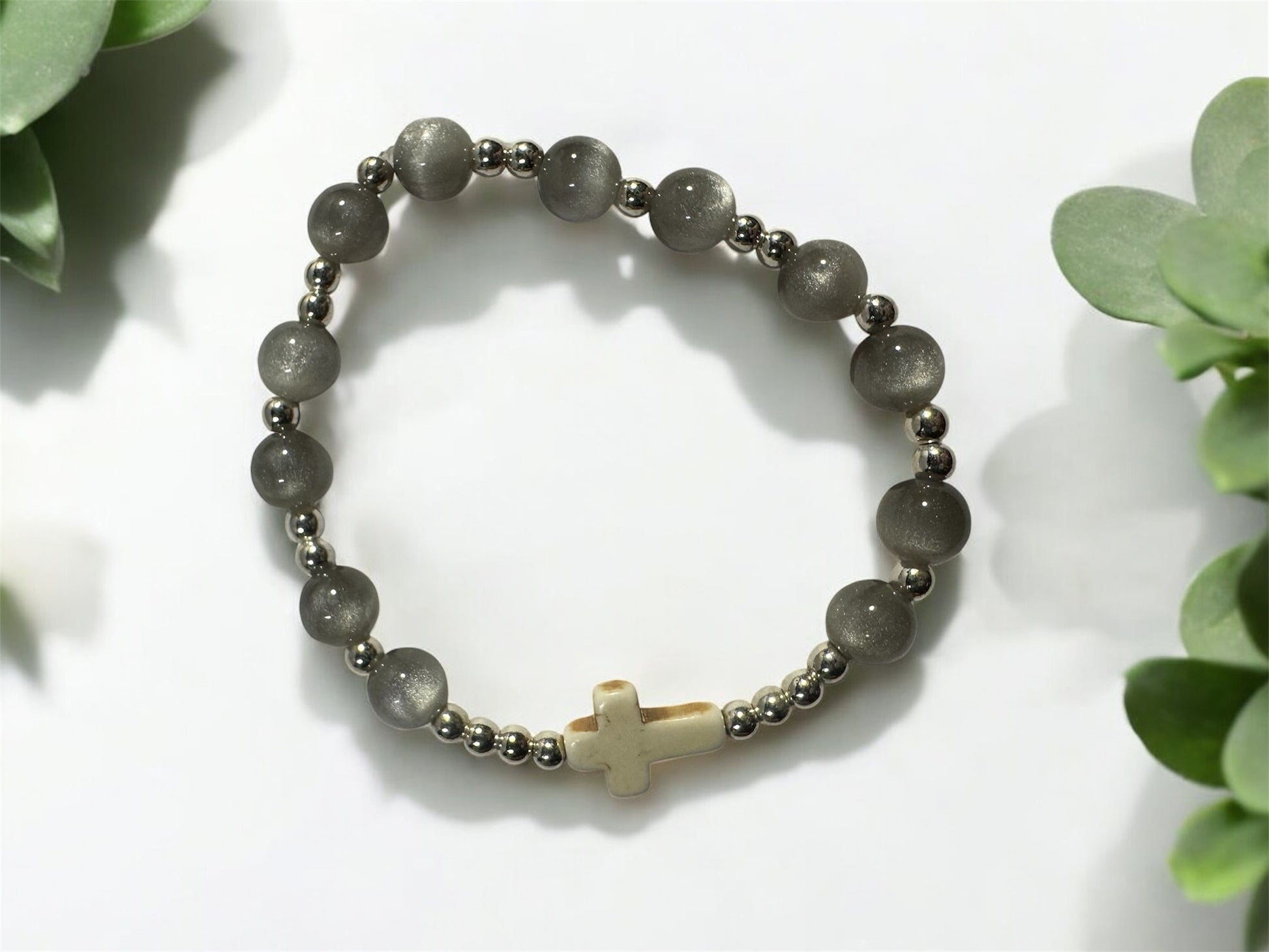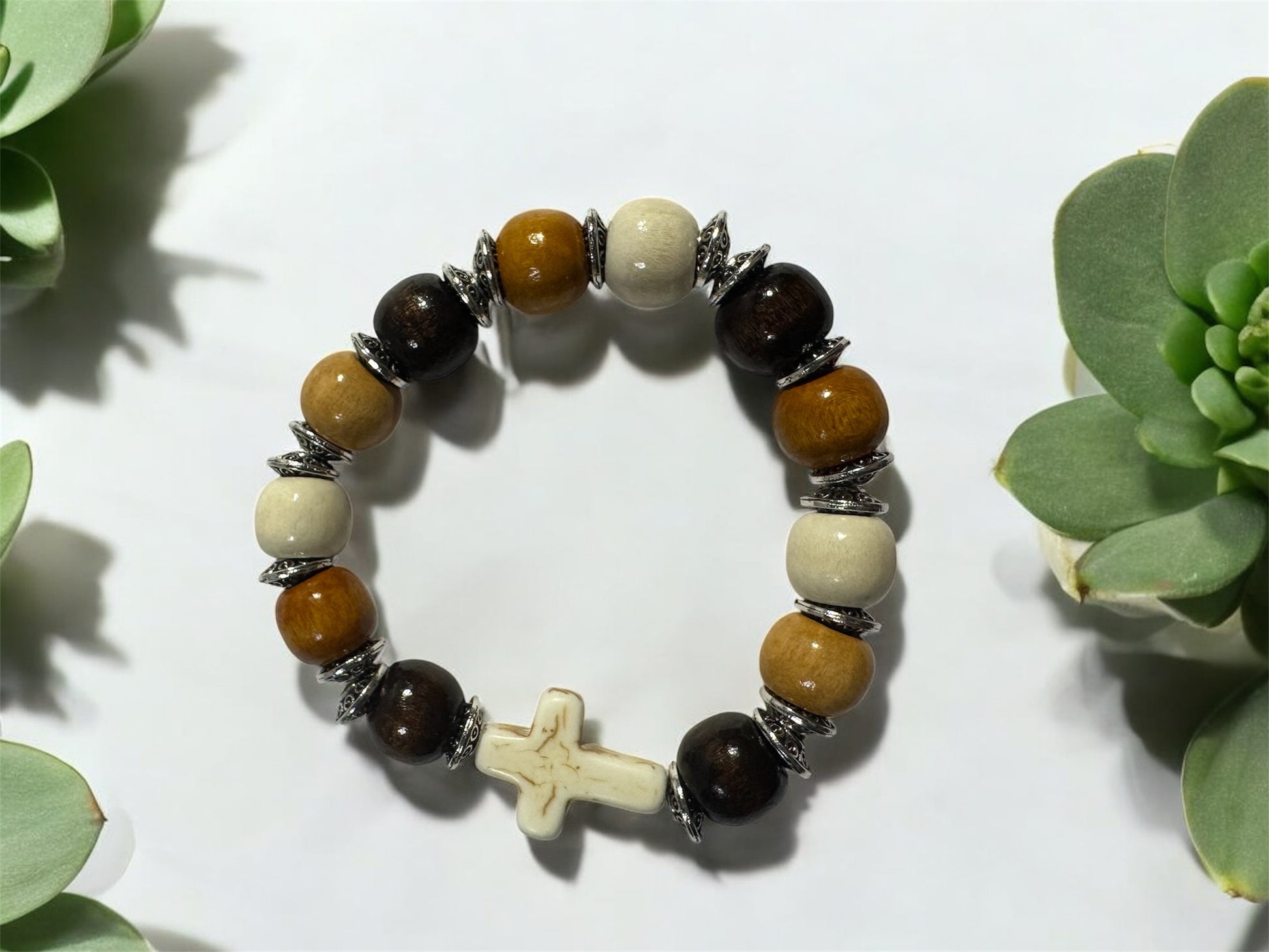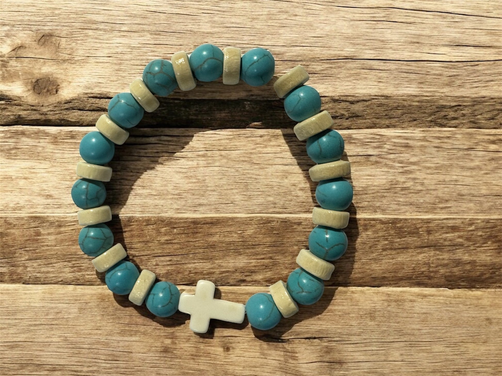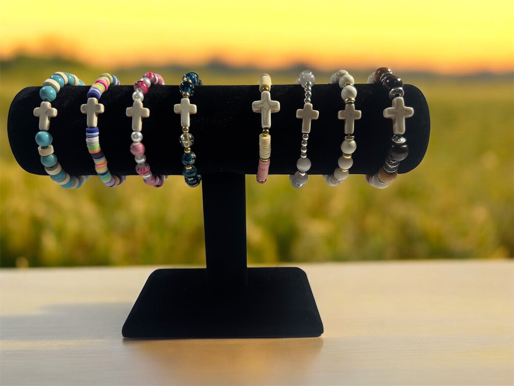 Handmade with love, each bracelet in our collection features a meaningful cross centerpiece and a unique mix of beads. Stretch fit for comfort and everyday wear. Perfect as a gift or a daily reminder of faith.