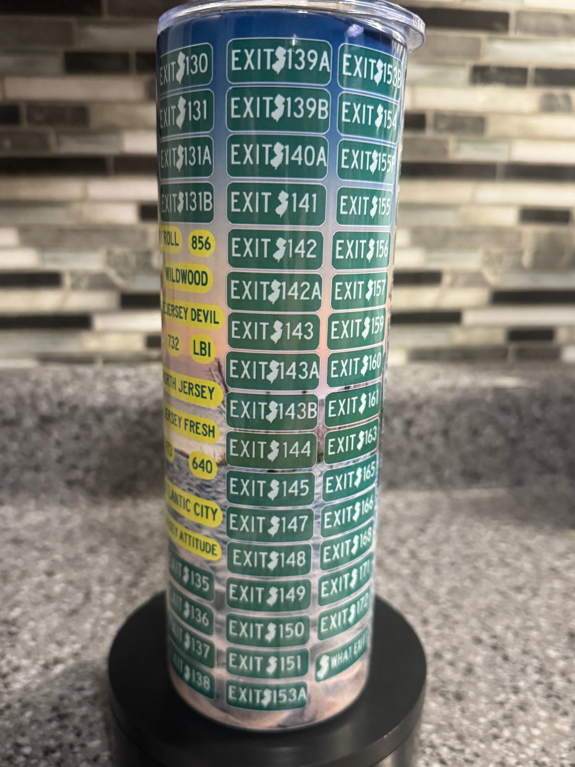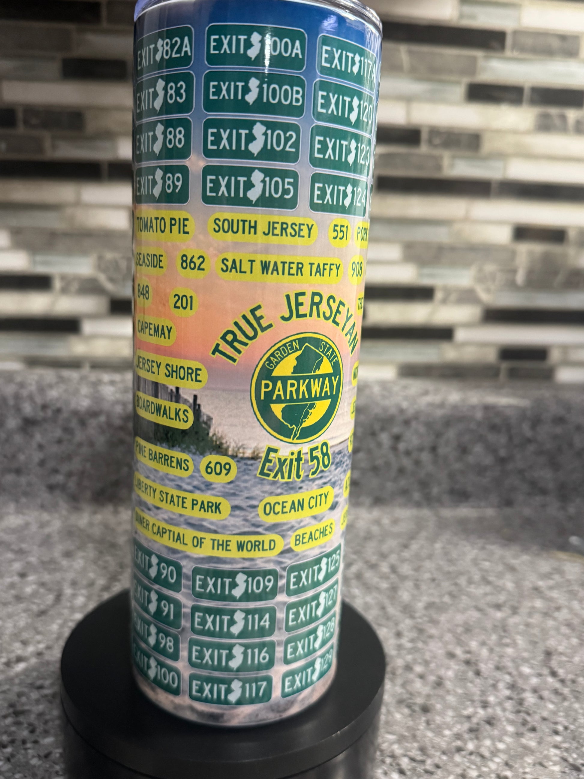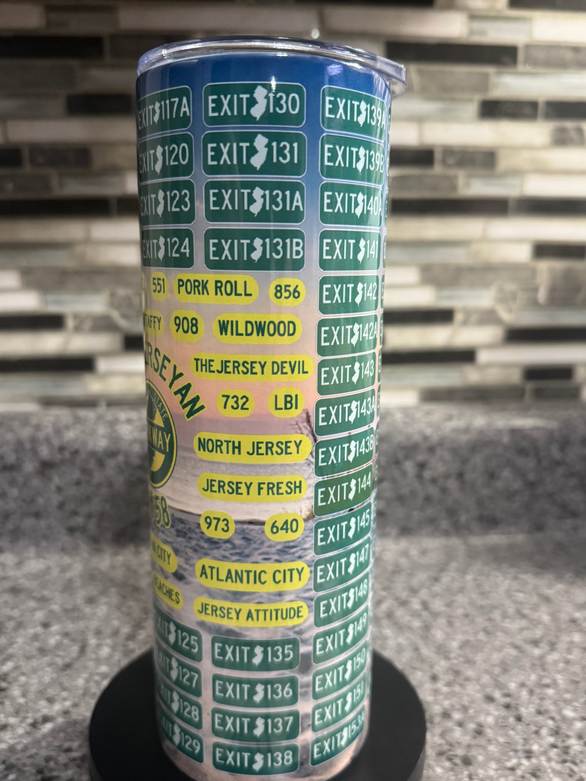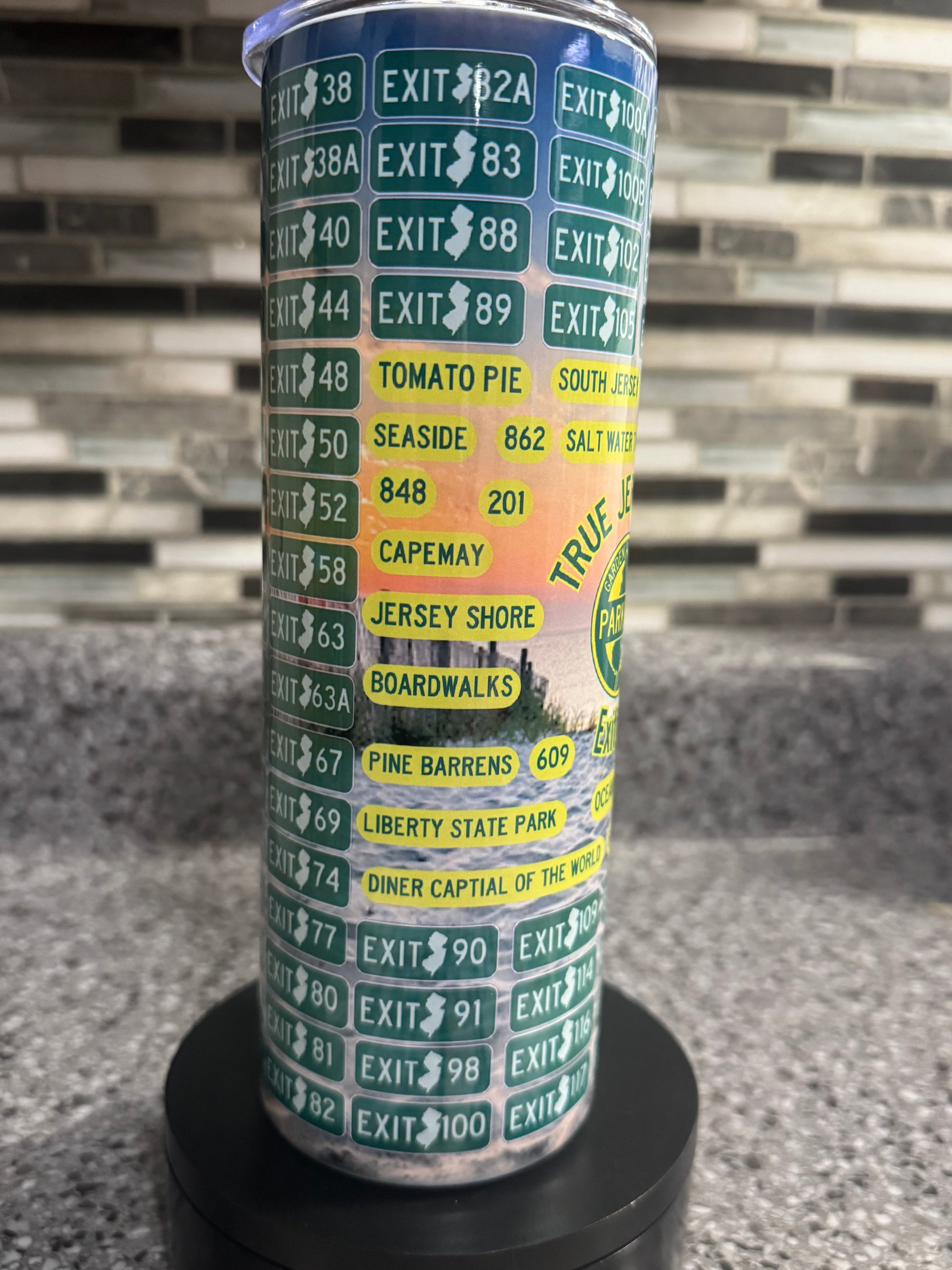 For every proud Jerseyan—this sleek tumbler features Garden State Parkway exits and can be personalized with your exit number.