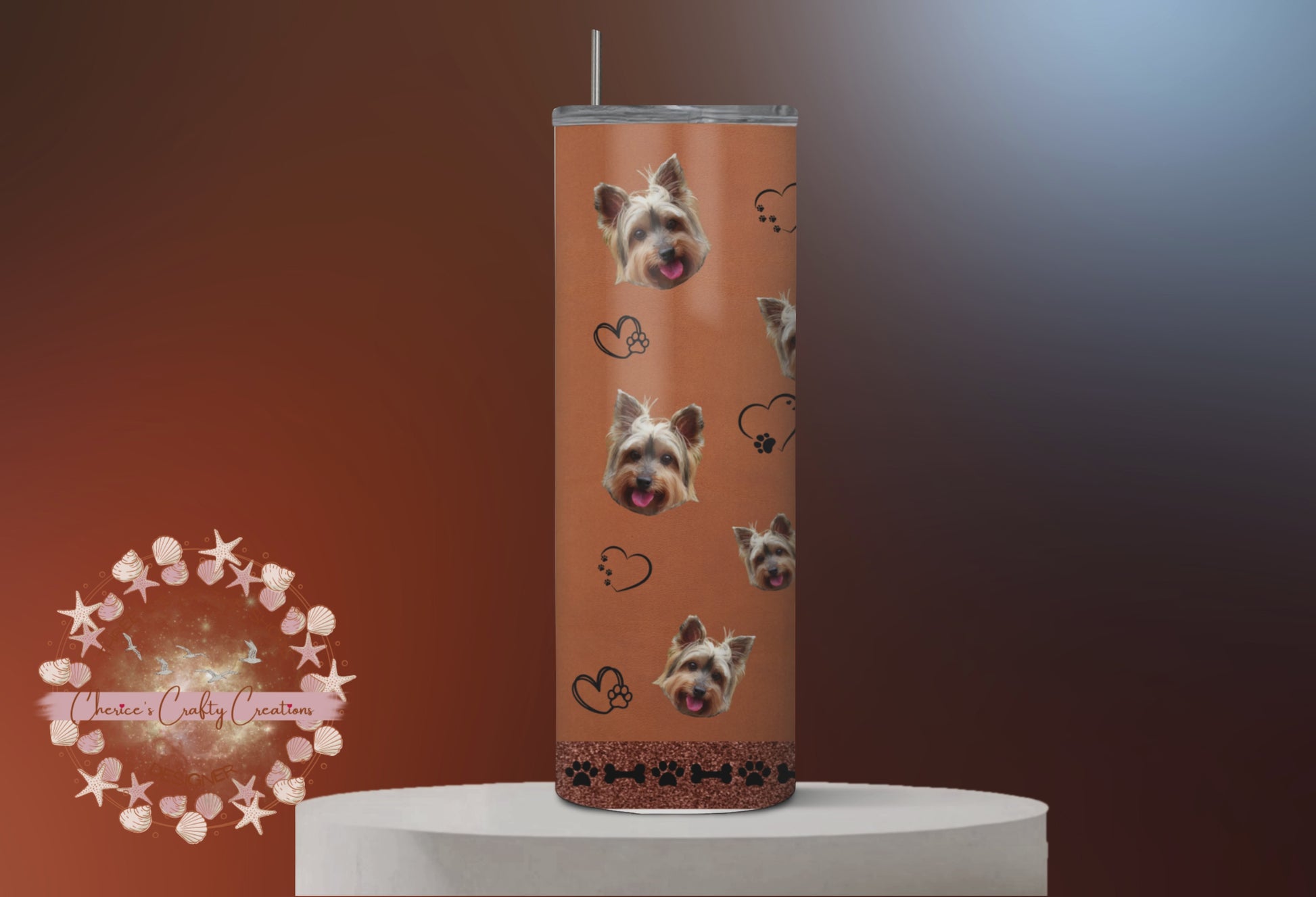 Bring your Yorkie to with you everywhere with this personalized tumbler with your fur babies picture all over it.