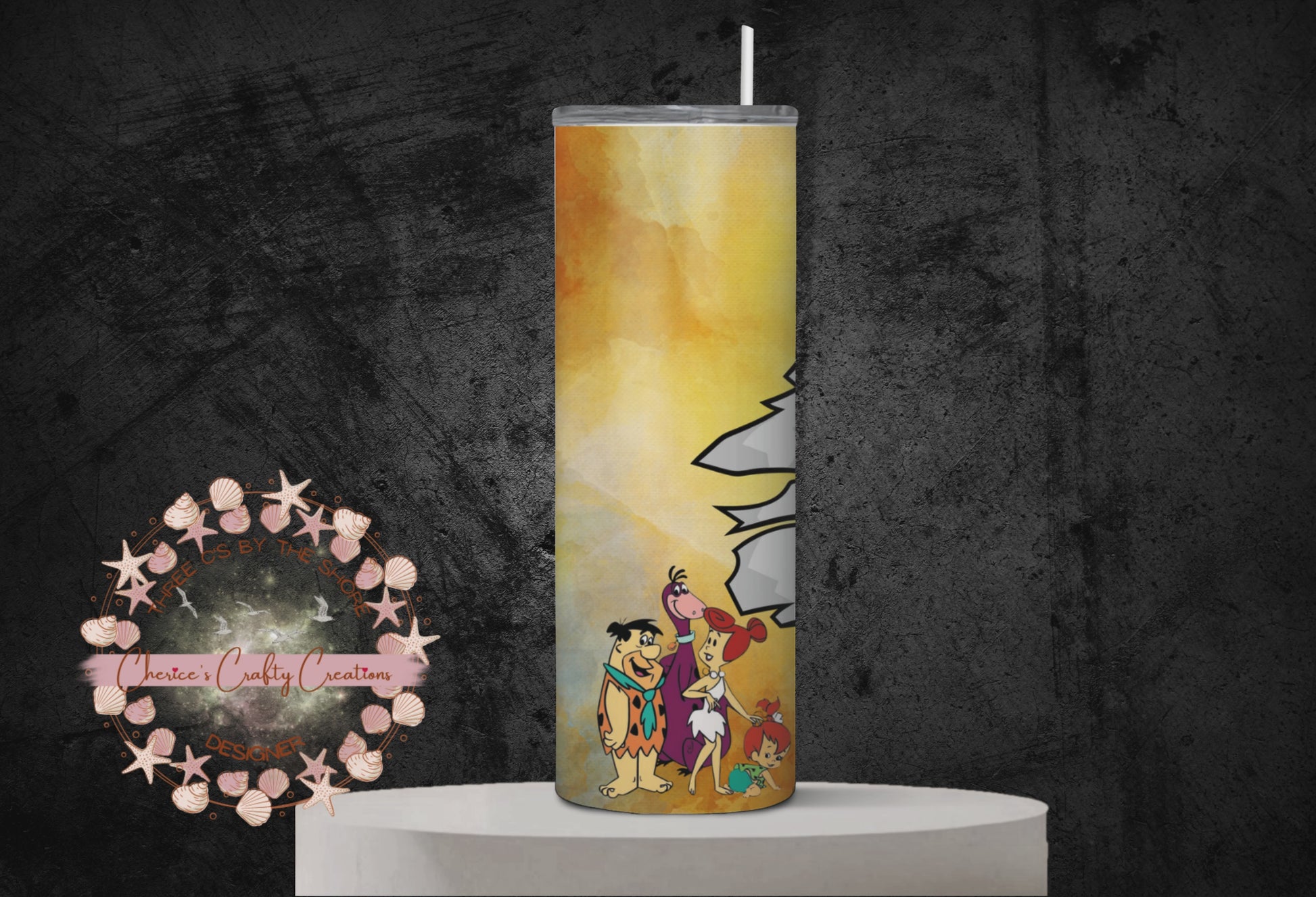 Meet The Flinstones with this 20 oz tumbler! Who doesn't remember the Flintstones? This tumbler features Fred, Wilma, Pebbles, Dino and the Rubbles; Barney, Betty and Bamm-Bamm.