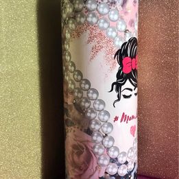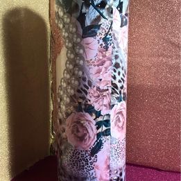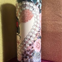 20 oz skinny tumbler that will keep your hot drinks hot and your cold drinks cold for hours. Made with sublimated print placed on tumbler. Digital glitter used in design, not actual glitter.