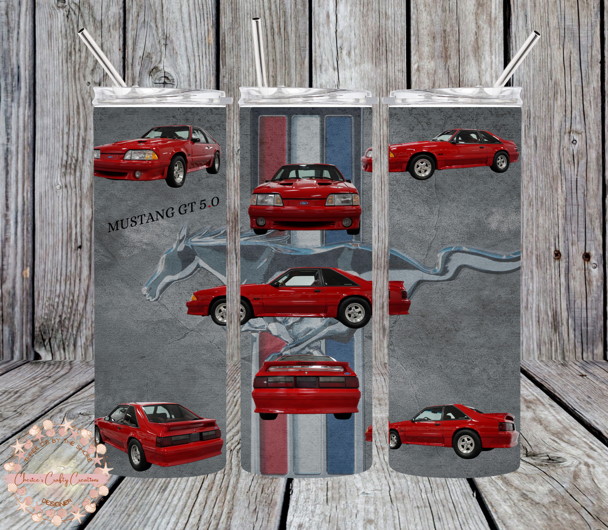 Nothing says "Mustang" like a 5.0 Fox body. For you Mustang fans out there, this 20 oz tumbler is the perfect way to show your love for the Mustang and the Fox Body GT. I can change the color of the car