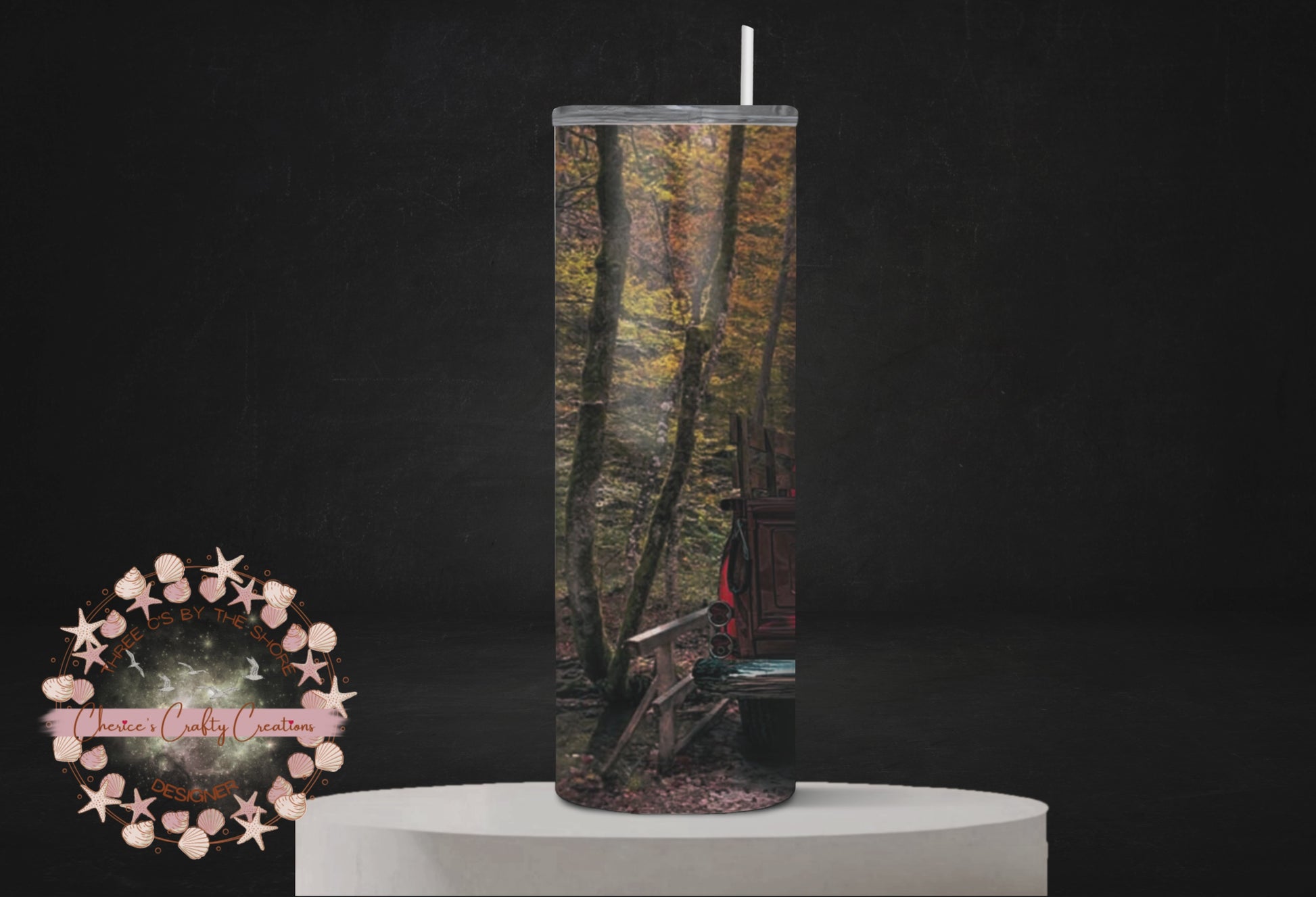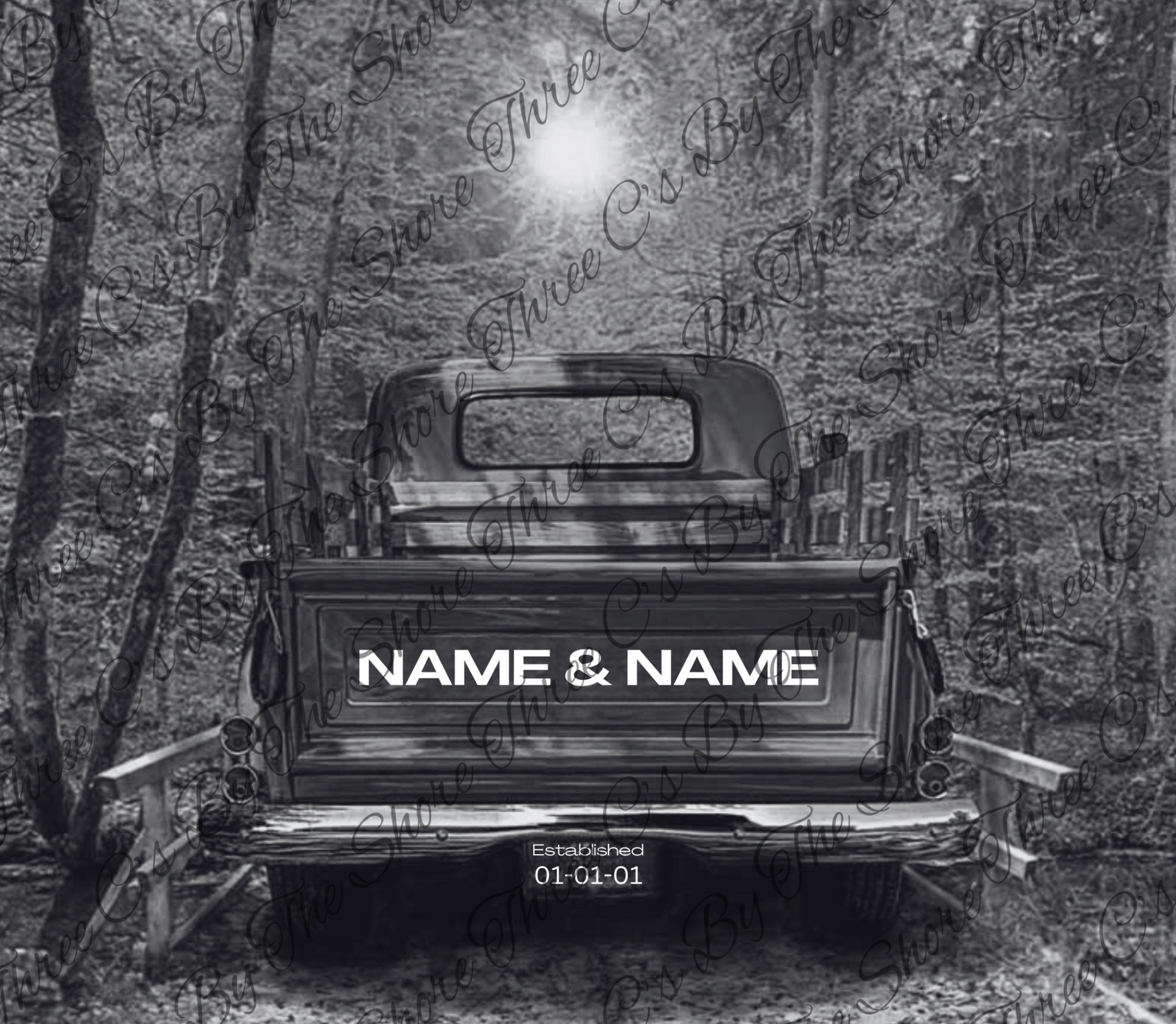 This personalized tumbler is perfect for you and your partner. It has both your names across the tailgate, and the date it all started on the license plate. You can enjoy it in color or black and white.